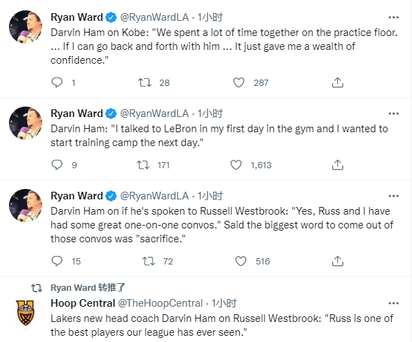 哈姆还说:请不要误解!威少是联盟历史上最出色的球员之一。他的油箱里仍有油。我不知道为什么人们总是尝试唱衰他。