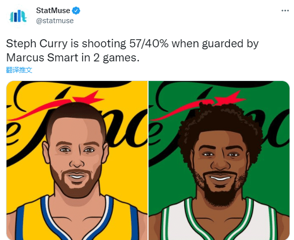 据美媒Muse Stat统计,在总决赛前两战中,库里在面对斯玛特的防守时,他的投篮命中率为57%,三分命中率为40%;总决前两场,库里场均轰下31.5分5.5篮板4.5助攻,投篮命中率为45.7%,三分命中率为46.2%。