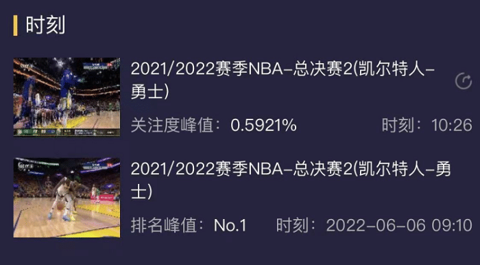 这场比赛的关注度极高,大家都想要看看勇士在输掉G1之后会如何回应,在收视率上也有体现。工作日的上午,NBA总决赛G2的收视率同时间段位居全国第一,巅峰时刻收视率高达0.5921%,非常不错的数据。