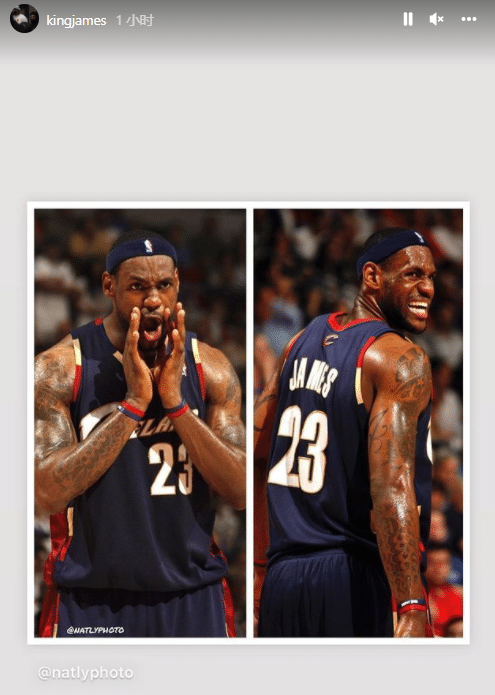 詹姆斯还转发15年包揽全队最后全部25分的集锦和赛场照。