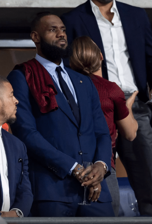 今日詹姆斯来到欧冠决赛现场,站在看台上为利物浦加油打气,喝着香槟看比赛,不过利物浦0-1落后,老詹一脸愁容,明显不开心了,最终利物浦输掉比赛,无缘欧冠冠军。