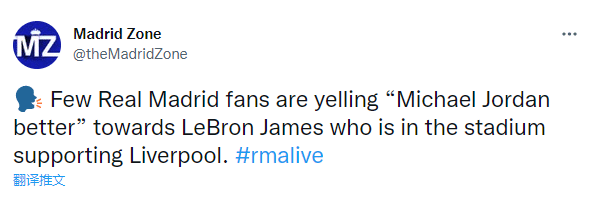 NBA球员中的皇马球迷很开心,但利物浦小老板勒布朗-詹姆斯恐怕要难受了。
