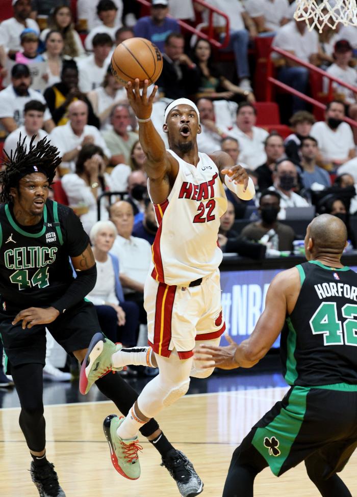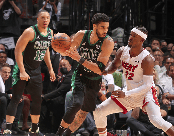 第二节,两队的防守依旧激烈,进攻依旧一般,巴特勒上场后造塔图姆犯规两罚全中,本节没有出手,仅靠罚球拿到2分,热火半场42-37领先5分,天王山的对抗太激烈,这是今年分区决赛首次半场分差在5分以内。