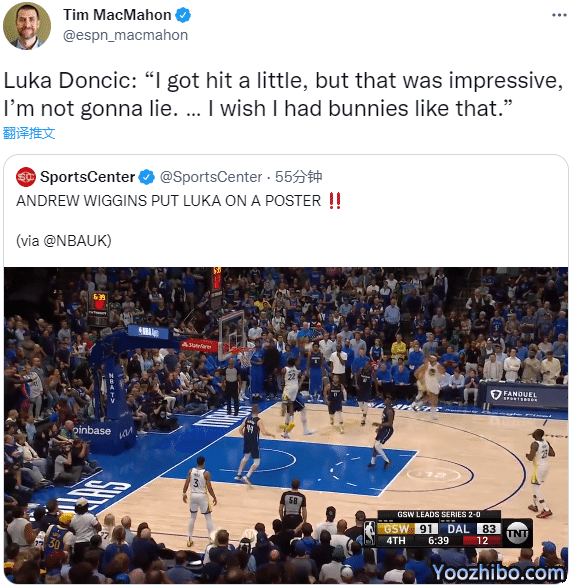 勇士众球星盛赞维金斯,另一当事人东契奇谈到被隔扣,表示:那一球我被他打到了,但那扣篮确实令我印象深刻,我没有说谎。