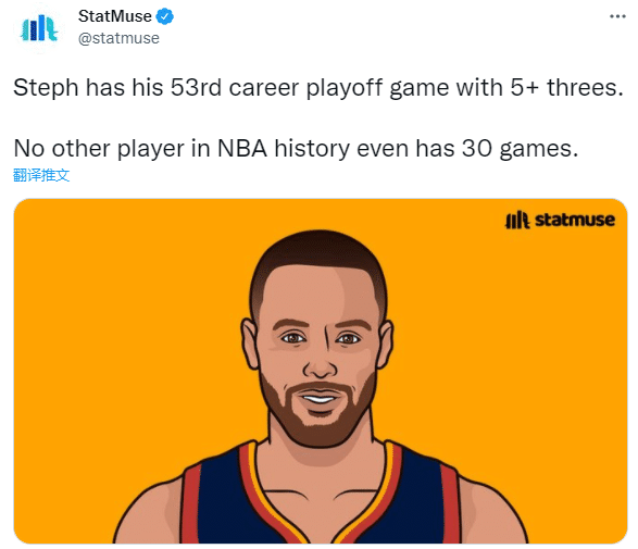 勇士拿下西决G3,库里一战又创多项纪录,季后赛第53次单场至少命中5记三分,高居历史第一;库里季后赛第47次30+超越诺维斯基升到历史第11位;19年之后首次在西决轰下30+10。