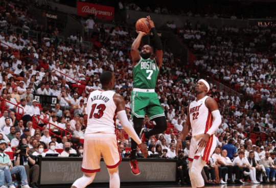 回到本场比赛,在比赛中热火在开局凭借着更加优秀的手感甚至还一度保持了一定的领先,但很快斯玛特和杰伦布朗便站出来扭转了局势,绿军连续的三分命中直接反超了比分,时间来到第二节塔图姆也逐渐进入进攻状态,最终在绿军三核心的共同发力下,绿军上半场打出了70——45的巨大分差优势,比赛也在这一刻失去了悬念。虽然第三节和第四节热火都在奋起直追,但绿军的进攻火力源源不断,双方在下半场都拿下了47分。