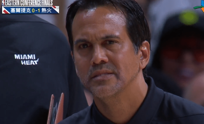 热火这一节的进攻手感非常糟糕,斯特鲁斯外线连续三分不中。而塔图姆此后大爆发,他在外线继续命中,随后面对防守强行2+1打成,接着塔图姆再造犯规两罚全中。整个第二节,塔图姆单节比赛轰下了17分。在塔图姆的带领下,凯尔特人将分差扩大到27分。镜头给到热火主帅,斯波教练满脸愁容。