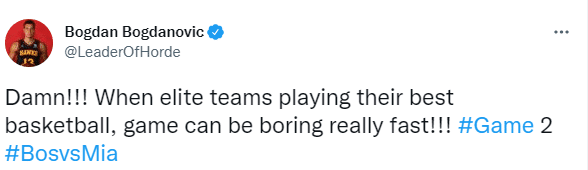 詹姆斯观战东决G2,并且发推写道:“我们比赛里的非法掩护太疯狂了!这需要作为重点强调一下。老鹰球员博格丹发推:该死!!!当精英球队打出他们最好的篮球时,比赛会很快变得无聊!