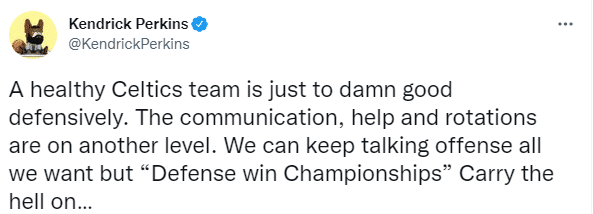 名嘴帕金斯发推:一支全员健康的凯尔特人防守太TM好了。这防守沟通、这协防、这轮转,都是独一档的。我们可以继续随心所欲地谈论进攻,但是防守赢得总冠军。