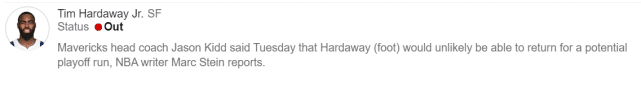 勇士独行侠4人缺战西决G1!波特复出小佩顿有进展 东契奇不紧张