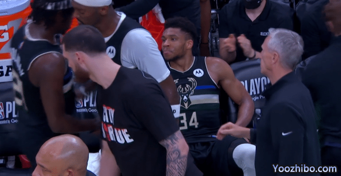 下半场,字母哥第三节的进攻也明显下滑,两次错失篮下得分的机会,希腊神兽突然失灵,绿军进攻依旧火力十足,单节31-21又净胜10分,三节打完雄鹿落后15分;期间字母哥撞倒斯玛特吃到进攻犯规,雄鹿挑战成功,取消字母哥的第四犯。