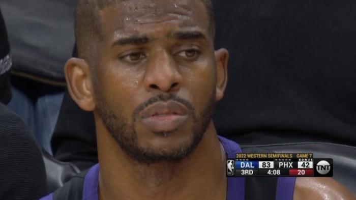 抢七生死战,保罗和布克半场11投0中狂打铁,太阳全队半场仅仅拿到27分却落后独行侠30分,下半场,太阳不仅没有触底反弹,而且第三节瞬间落后到40分以上,保罗下场后坐在场边,脸色铁青十分落寞;比赛早早沦为垃圾时间,最终太阳惨败并且输掉整个赛季。