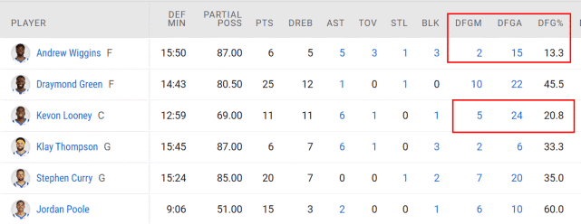 勇士G6防守数据出炉!维金斯+卢尼太强悍:两人防到对手39中7