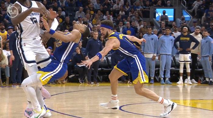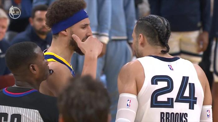 第二节,勇士外线火力依旧,汤普森连中两记三分,勇士领先到9分;可打着打着勇士突然失误不断,灰熊一波14-0又反超比分;库里助攻格林终于打破得分荒,灰熊哑火,勇士9-0扭转局面,半场领先灰熊2分;期间场上发生恶犯事件,狄龙不满判罚而凶狠推倒库里泄愤,吃到一级恶意犯规,汤普森为库里出头,与狄龙互喷争吵,两人都吃到技犯。