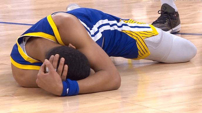 第三节,普尔不幸被小杰克逊意外撞倒面部,痛苦倒地,两人都是冲着球去的。