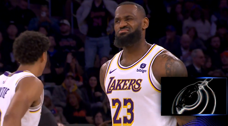 下半场,湖人第三节21-27被尼克斯反超比分,詹姆斯单节5中3又拿到6分,湖人落后6分进入末节决战;期间,浓眉连续大帽对手,里夫斯反击时无意撞倒詹姆斯。