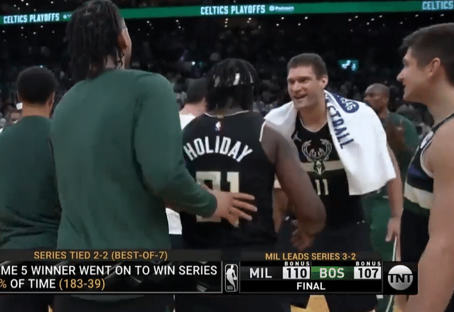 最后阶段霍勒迪的这两次防守,成为绿军难以承受之重。波蒂斯的补篮让雄鹿反超1分,绿军仍有机会。但斯玛特的上篮,却被霍勒迪大帽,而且最终霍勒迪将球砸向斯玛特出界。最后一防,又是霍勒迪,又是直接生断斯玛特!