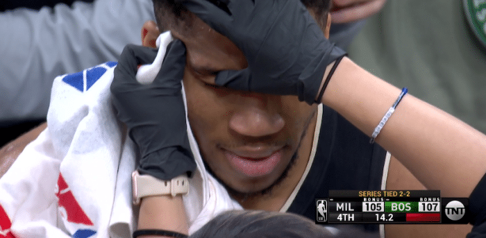 塔图姆关键两分,霍福德双手补扣,生死时刻,字母哥投进三分球,波蒂斯错失关键球,斯玛特致命失误,霍乐迪三分追平,字母哥眼角被打破,满脸鲜血,遭康诺顿肘击误伤;止血后又流血,字母哥拼了,字母哥关键两罚一中,但波蒂斯补篮反超,霍乐迪盖帽和抢断绝杀,最终雄鹿险胜,波蒂斯制胜一击,霍乐迪防守太狠。