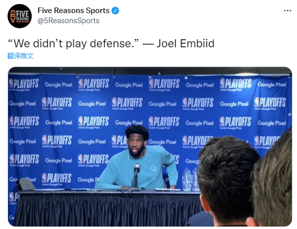 谈到本场失利,恩比德表示:我们没有防守;我们不够专注,我们打得不努力,我们没有按照比赛计划进行。我们没有移动球。我们必须被锁死了。