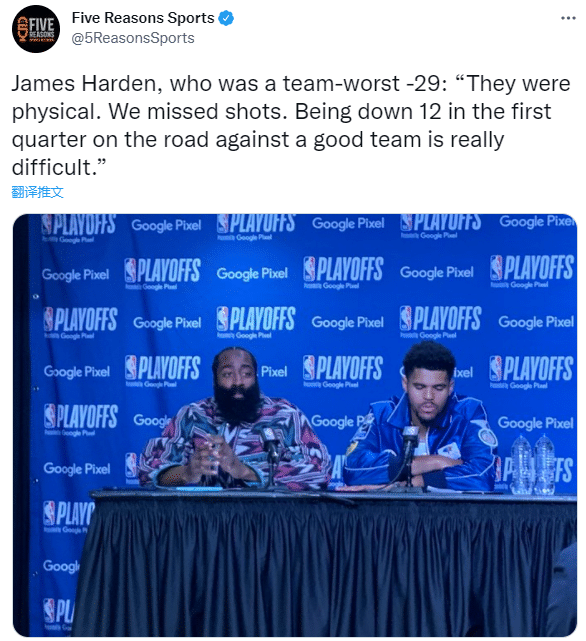 谈到本场失利时,哈登表示:他们身体对抗很强,我们投丢了些球。客场面对一支出色的球队首节落后12分(首节76人19-31落后)真的很难;哈登还表示我们没有去做任何事情,我们从比赛一开始就没有与热火队的强度相匹配。