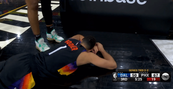 布克遭恶犯撞飞!太阳单节33-14打爆独行侠,布克打得对手输急眼