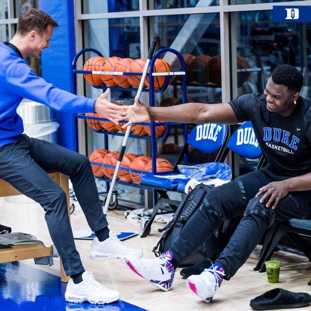不少NBA球员在休赛期都喜欢回到母校训练,锡安也是如此。他只在杜克打了一年就参加NBA选秀,成为状元。在杜克效力的那一年,锡安打了33场比赛,全部首发,场均出战30分钟,贡献22.6分8.9篮板2.1助攻2.1抢断1.8盖帽,投篮命中率68%!