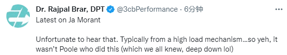 Rajpal Brar表示:不幸听到莫兰特遭遇膝盖骨挫伤,但很明显,不是普尔造成的。