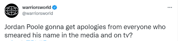 美媒warriorworld发推写道:所有抹黑普尔名字的人都该向他道歉;G3赛后,普尔回应莫兰特受伤事件,表示:那是一个篮球动作,我不是那种肮脏的球员,我不希望任何人受伤;G4赛前,莫兰特和普尔两人握手表示友好。