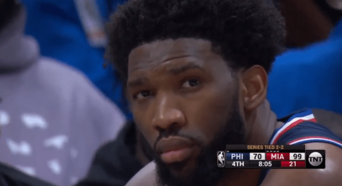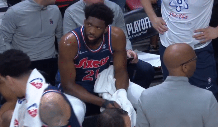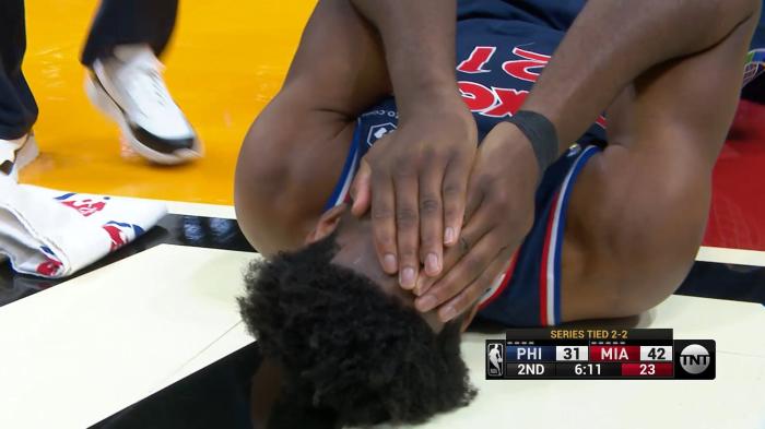 35分惨败仍咧嘴大笑!恩比德半场6分遭狠批,受伤面部被砸太痛苦