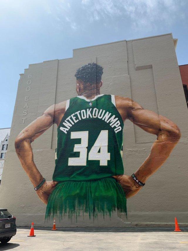字母哥巨幅壁画完工!高达16米耗时超13天:艺术家致敬雄鹿MVP