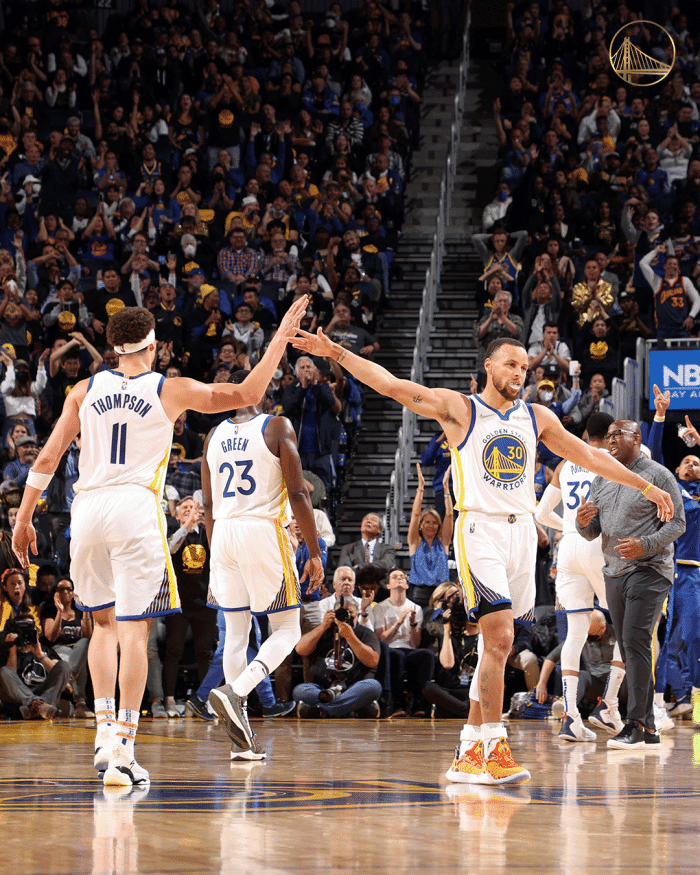 最后时刻,勇士投篮哑火,终场前45.7秒,库里造犯规两罚全中,勇士94-93反超1分;小杰克逊关键投篮不进,库里被推倒再次上罚球线,两罚再有,格林制胜防守,库里再次罚球,最终勇士主场拿下G4,系列赛3-1领先多赛点;库里疯狂怒吼庆祝。