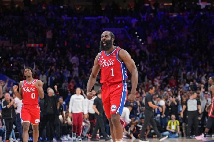 哈登爆发引热议!76人官方盛赞后撤步之王,名嘴:他能杀进总决赛