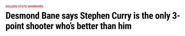 “除了他,其他人得证明给我看(投射比我好),库里配得上他的鲜花,还有克莱-汤普森,他也从伤病中康复了。我希望自己能像他们(水花兄弟)那样被关注和讨论。这就是我奋斗的目标。”