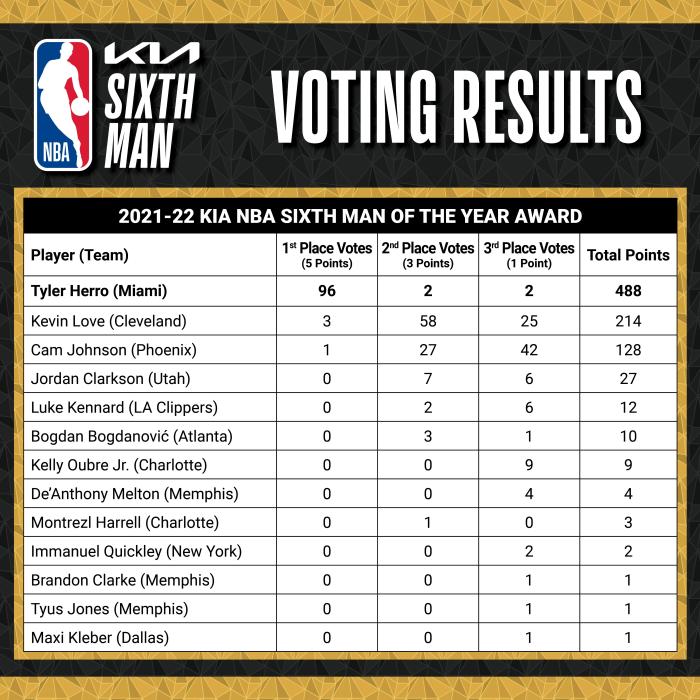希罗总共获得96张第一选票、2张第二选票和2张第三选票,总分488分排名第一,乐福仅获得3张第一选票,总分214分,约翰逊128分;另外获得选票的球员还有克拉克森、哈雷尔、克莱贝尔等球员;希罗完胜乐福和约翰逊,夺得热火队史首个最佳第六人大奖。
