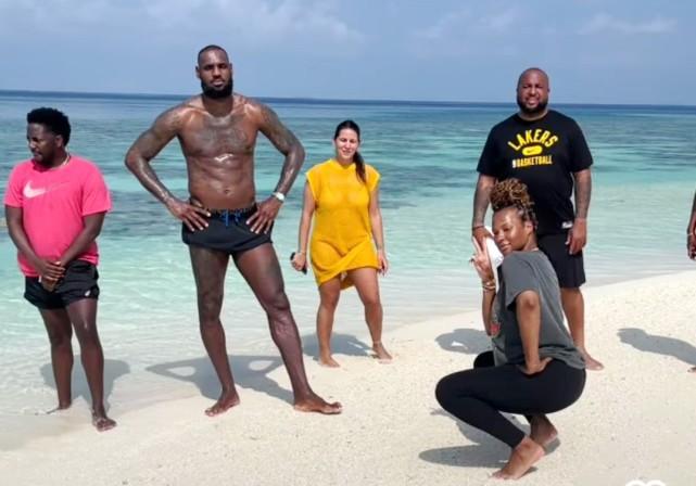 詹皇晒马代旅游照!赤膊叉腰肌肉线条抢镜 詹嫂:想念在这里醒来