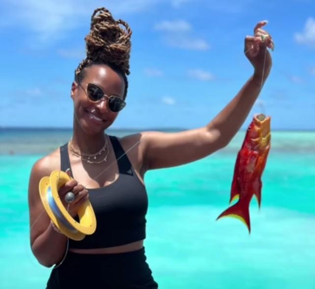 詹姆斯和一群亲友在海滩上合影,詹姆斯赤膊出镜,双手叉腰,肌肉线条抢镜,身上几乎找不到赘肉。奔向38岁的老詹能够在2021-22赛季打出场均30.3分的表现,确实离不开平时自律的训练,他的身材控制甚至完胜不少年轻人。詹嫂秀出自己钓到的鱼,兴奋不已。