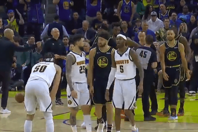 再遭打击!掘金悍将受伤离场,约基奇单节10板,库里8中3+2次失误