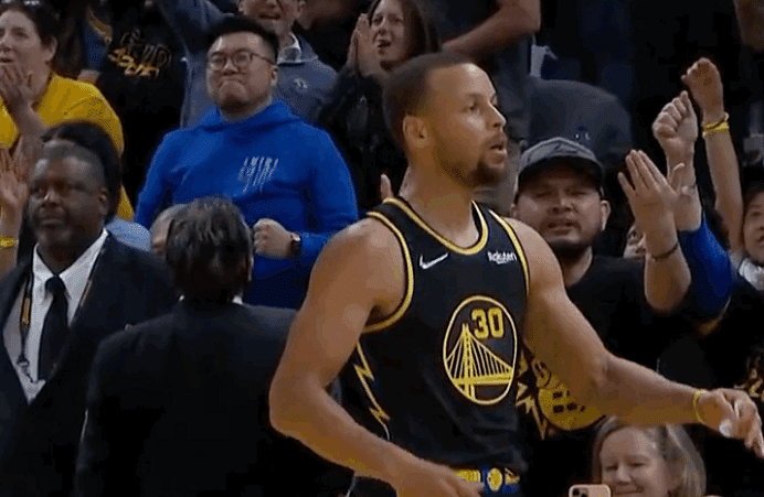 库里三分球11中5,职业生涯季后赛已经49次单场命中至少5记三分,位列历史第一,领先克莱和雷阿伦。