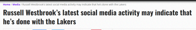 湖人记者Buha在最近一篇文章中表示,他认为威少肯定会离开湖人,并希望湖人最终能用威少+纳恩(或者再加塔克)这样的筹码换来步行者的布罗格登和希尔德,认为这样的后场组合,更能帮助到浓眉和詹姆斯。