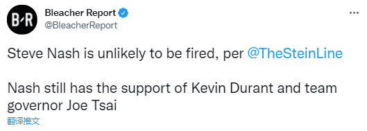 Stein表示:篮网老板蔡崇信有些冲动和难以预测,很难解读他会如何应对本赛季首轮被淘汰,纳什在没有任何执教经验的情况下得到了篮网的这份工作,主要有KD和球队老板支持。只要他能继续得到蔡崇信和杜兰特的支持,他就不太可能会被球队解雇。