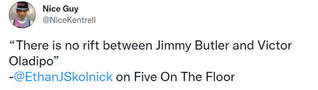 不过,这只是Skip的爆料,没有得到更多记者的证实。反而是热火当地的媒体人Ethan在播客节目中表示,巴特勒和奥拉迪波之间没有裂痕。