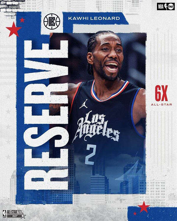 快船的莱昂纳德入选西部全明星替补阵容。这是莱昂纳德生涯第6次入选全明星。赛季至今,莱昂纳德场均23.9分6.3篮板3.7助攻,投篮命中率52.6%,三分命中率43.9%。