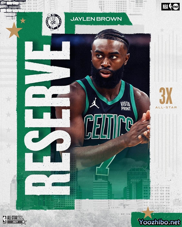 凯尔特人的杰伦-布朗入选东部全明星替补阵容。这是杰伦-布朗生涯第3次入选全明星。赛季至今,杰伦-布朗场均22.6分5.4篮板3.7助攻,投篮命中率49.4%,三分命中率35.2%。