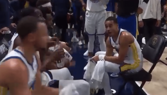 客串主帅!普尔坐科尔椅子“训话”勇士四大主力,过了一把当教练的瘾