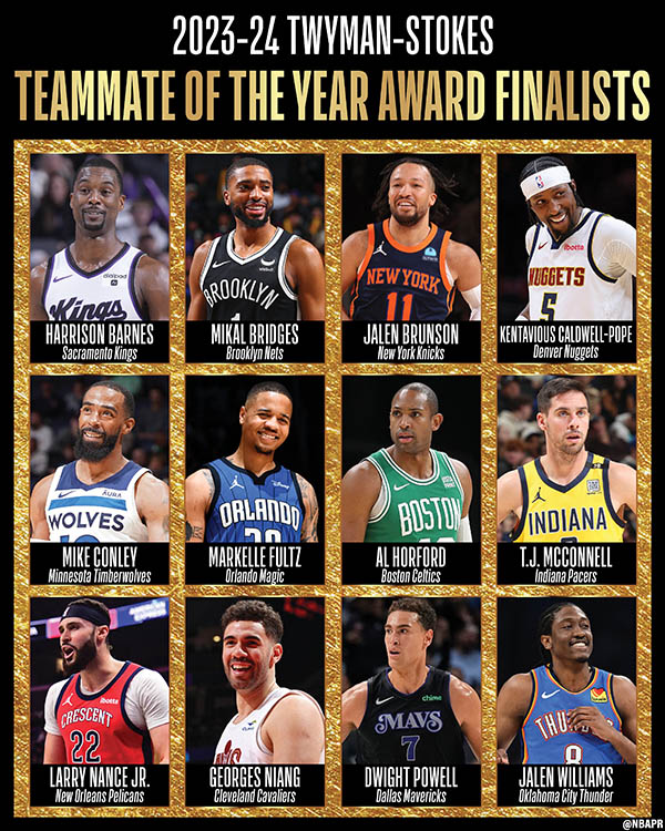 NBA官方公布本赛季的最佳队友奖最终候选名单。