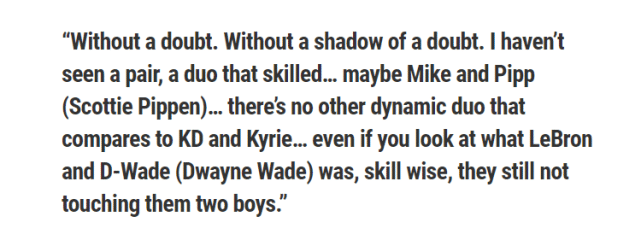 来源:JRS直播网04-20 16:12JRS直播网04月20日讯 ,前NBA球星麦迪参加了名嘴夏普的播客节目,他在节目上聊到了球员技巧方面的话题。麦迪表示,现有的两人组合没有一对可以和杜兰特、欧文相比,即便是詹姆斯和韦德的组合,他们在技巧方面也比不上杜兰特和欧文。