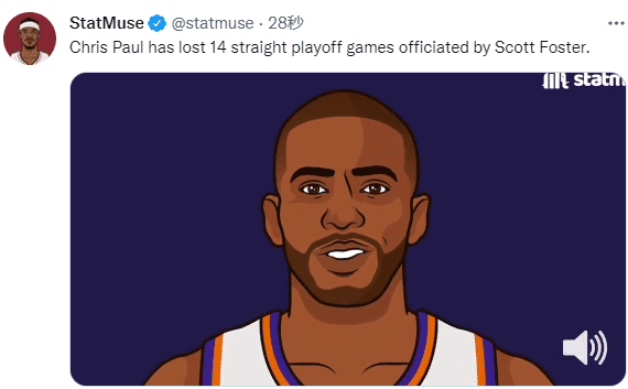 在斯科特-福斯特执教的季后赛中,保罗已经惨遭14连败的魔咒,这名哨已成保罗生涯最大苦主。