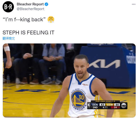第二节,掘金替补阵容再次领先到10分,可勇士水花兄弟带队打出14-0瞬间反超比分,期间库里强硬杀到禁区上篮得分,库里摘掉牙套怒喊:我TM回来了;勇士主场沸腾了,库里一发不可收拾,连续命中两记三分,一次又一次点燃球馆,巴顿被打得一脸沮丧,摊手跺脚太绝望。