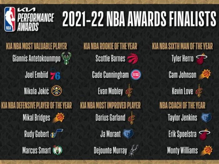 6大奖项候选名单出炉:字母哥约基奇恩比德争MVP