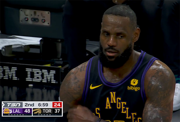 末节詹姆斯带队9-3继续扩大领先,9分22秒老詹下场休息,湖人彻底打爆猛龙,拉塞尔连中三分,冲着猛龙球迷挥手说再见;比赛彻底沦为垃圾时间,詹姆斯提前解开鞋带。